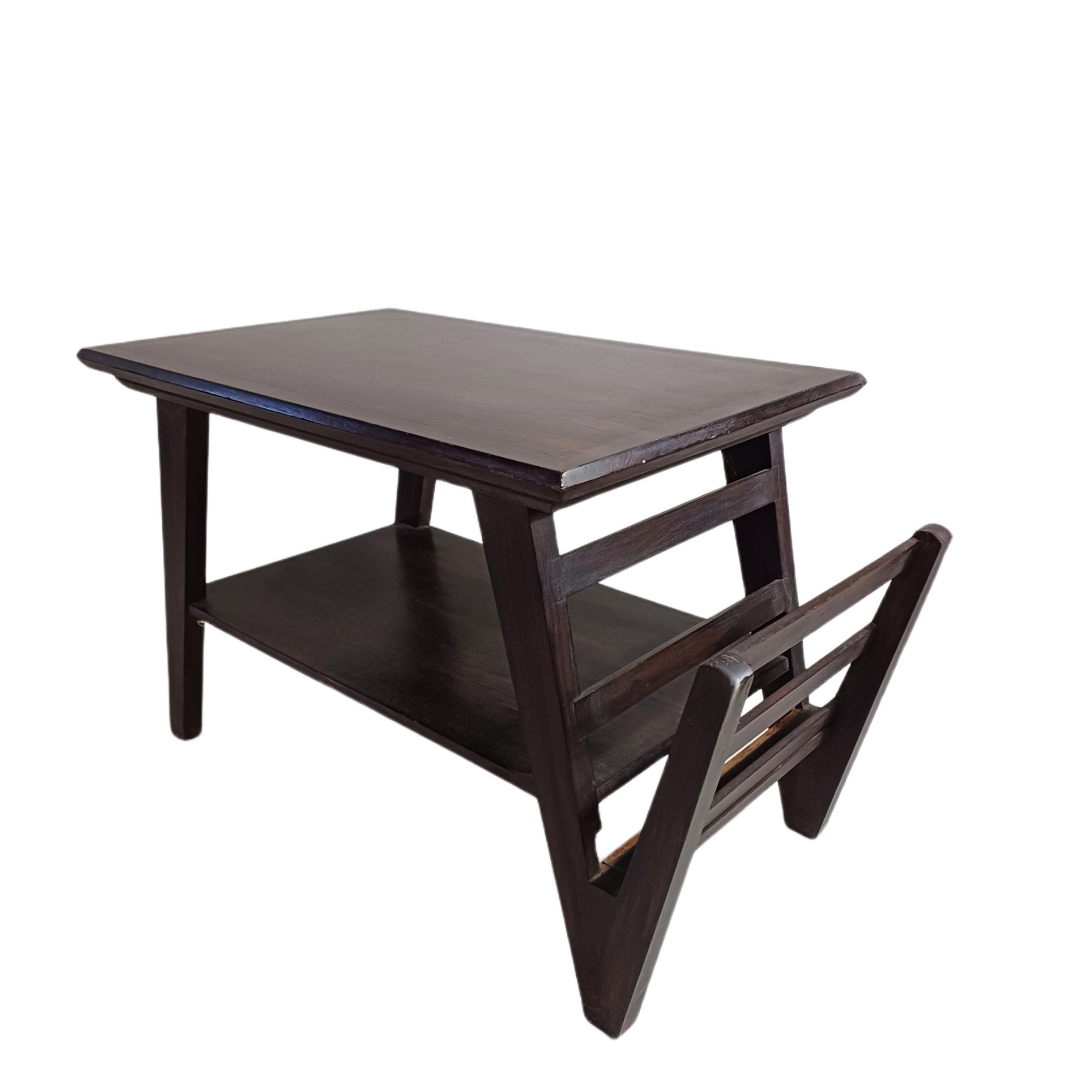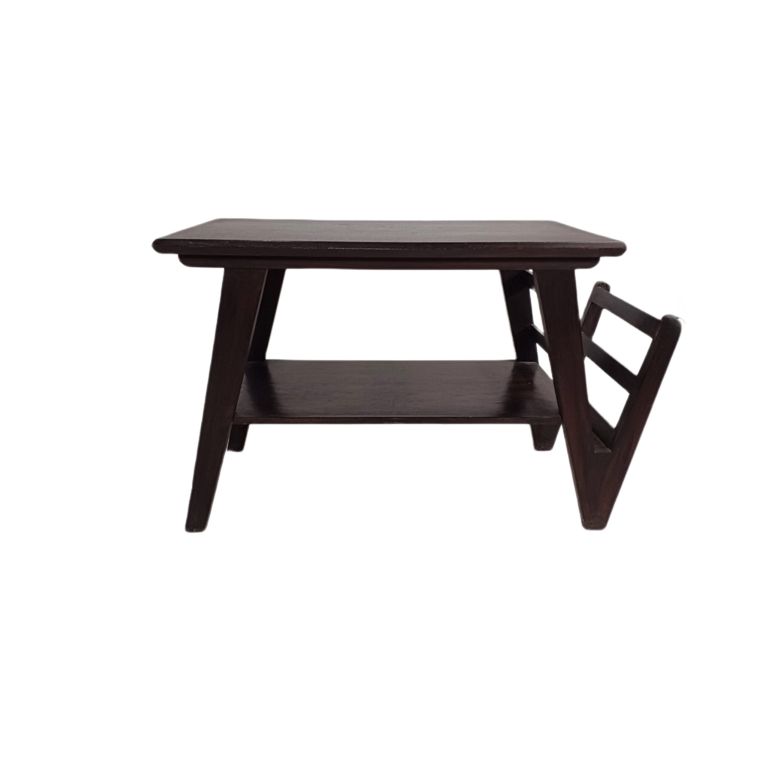 mesinha antiga com revisteiro.